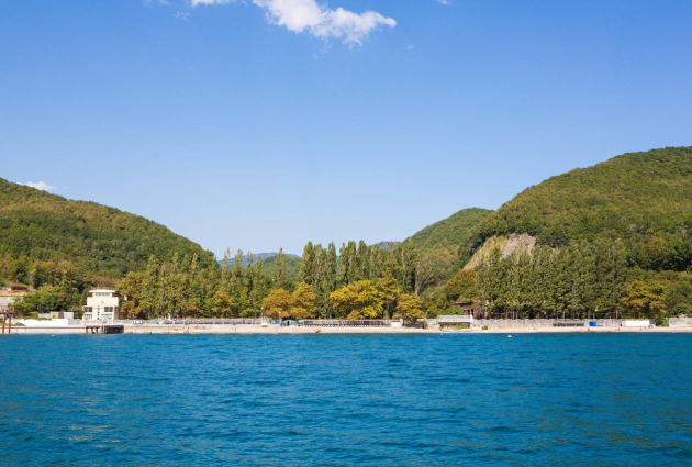 Пляж: Протяженность собственного галечного пляжа 264 м. с аэрарием и стационарными лежаками. Пляж оборудован спасательным постом и медицинским пунктом.