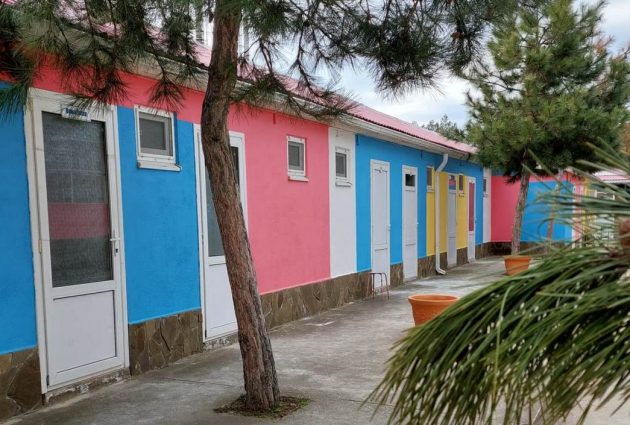 Пляж: Здравница располагает собственным огражденным песчаным пляжем площадью 7000 кв.м. Расстояние до пляжа не превышает 200 метров. Протяженность зоны для купания детей - 25-30 метров от берега, глубина моря не превышает 1,5 метров. На такой огромной территории хватает места и для удобных раздевалок, просторных тентов и зонтов от солнца с комфортными шезлонгами, есть место для спортивно – игровой площадки, подвижных игр на песке и, разумеется, раздолье для творчества. Обеспечивают безопасность детей во время посещения пляжа вожатые, опытные ответственные спасатели, плавруки и медицинские работники.